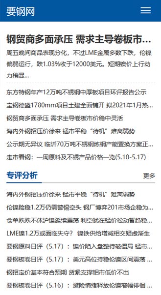 网站分为三大部分,资讯网站+微信公众号+电商平台,网站采用自适应框架,适配各终端。资讯网站主要以动态展示及数据查询为主。支持用户进行不锈钢行情、库存分析查询、进出口查询等功能。同步打通微信公众号进行资讯行情推广及线上不锈钢交易平台数据。为客户提供专业的不锈钢资讯及服务。