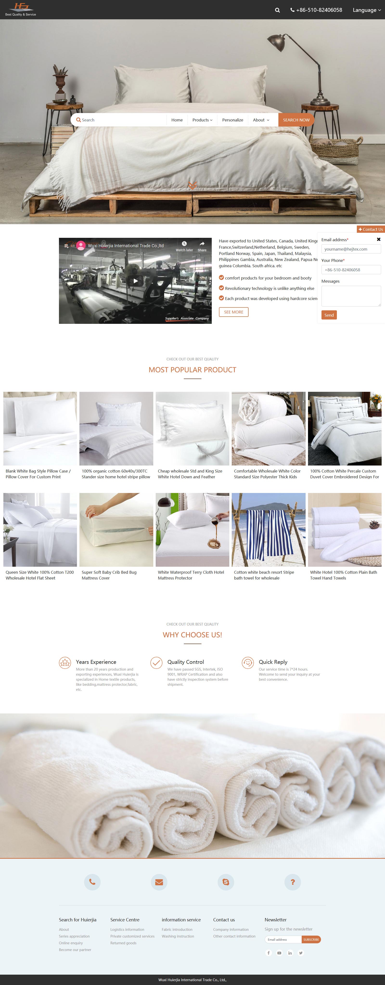 无锡汇尔嘉出口家纺酒店床品至全球各个国家,了解不同市场的测试标准,致力于高质量产品和服务。在过去二十多年来,我们工厂致力于酒店布草和家纺如面料,防水床垫保护套,床件套等。