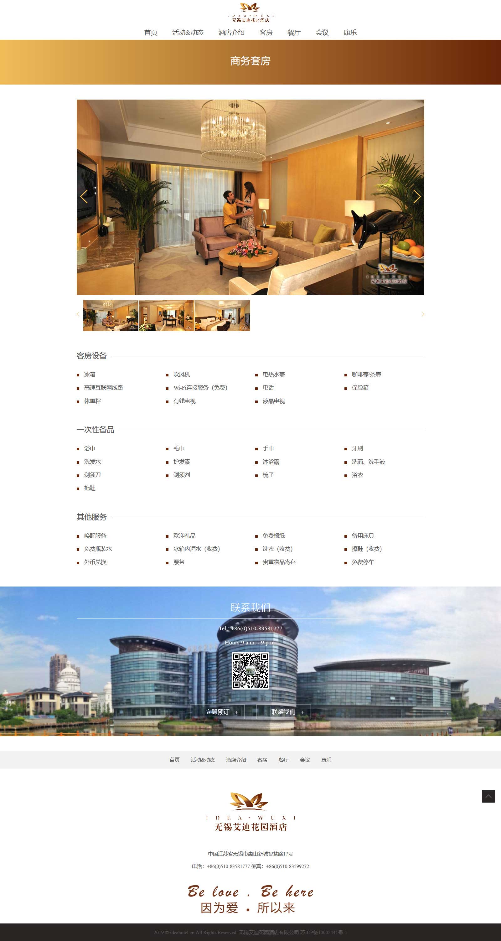 网站主要展现酒店环境及居住环境,突出“花园型”的特色,网站采用bootstrap4+css3,同时绑定微信公众号,方便客户一键识别,咨询预订。