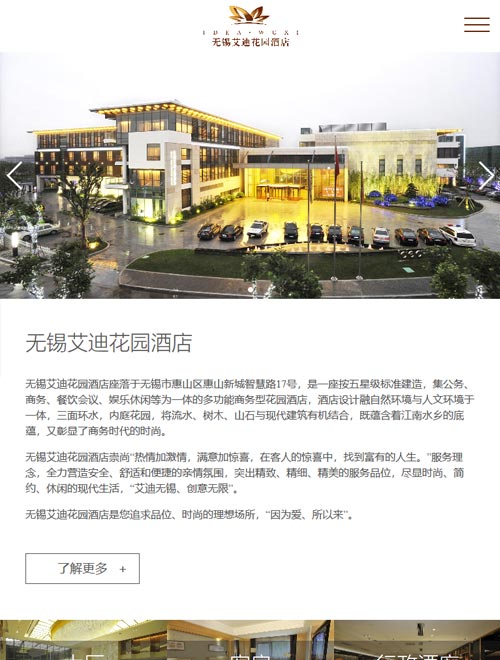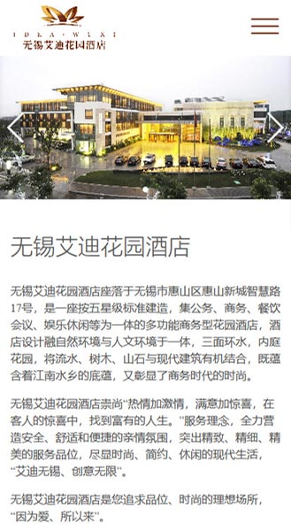 无锡艾迪花园酒店座落于无锡市惠山区惠山新城,是一座按五星级标准建造,集公务、商务、餐饮会议、娱乐休闲等为一体的多功能商务型花园酒店.