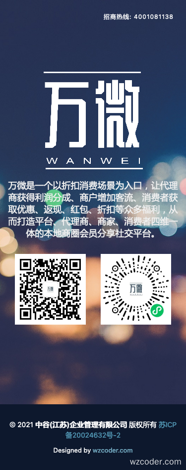 万微是一个以折扣消费场景为入口,让代理商获得利润分成、商户增加客流、消费者获取优惠、返现、红包、折扣等众多福利,从而打造平台、代理商、商家、消费者四维一体的本地商圈会员分享社交平台。