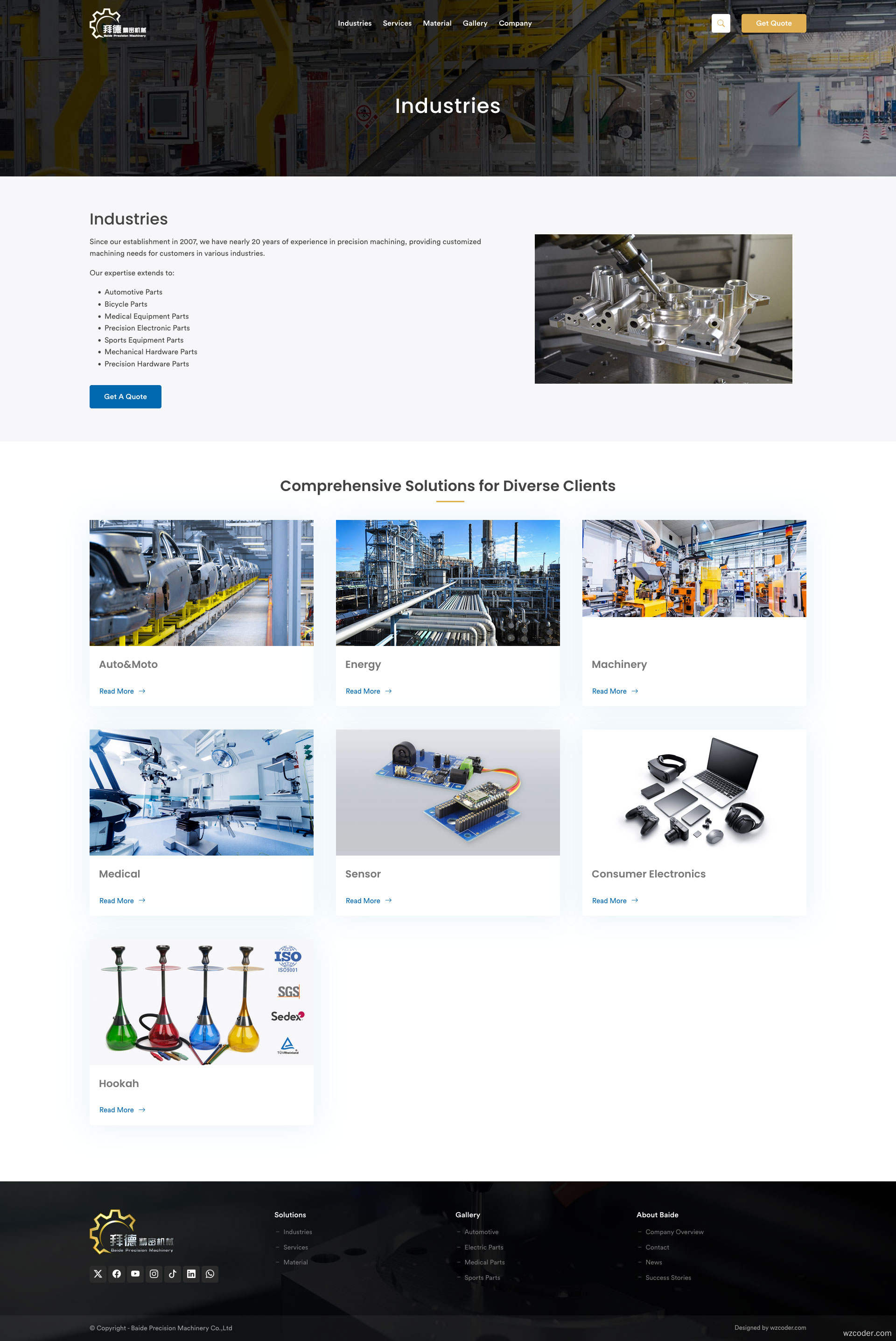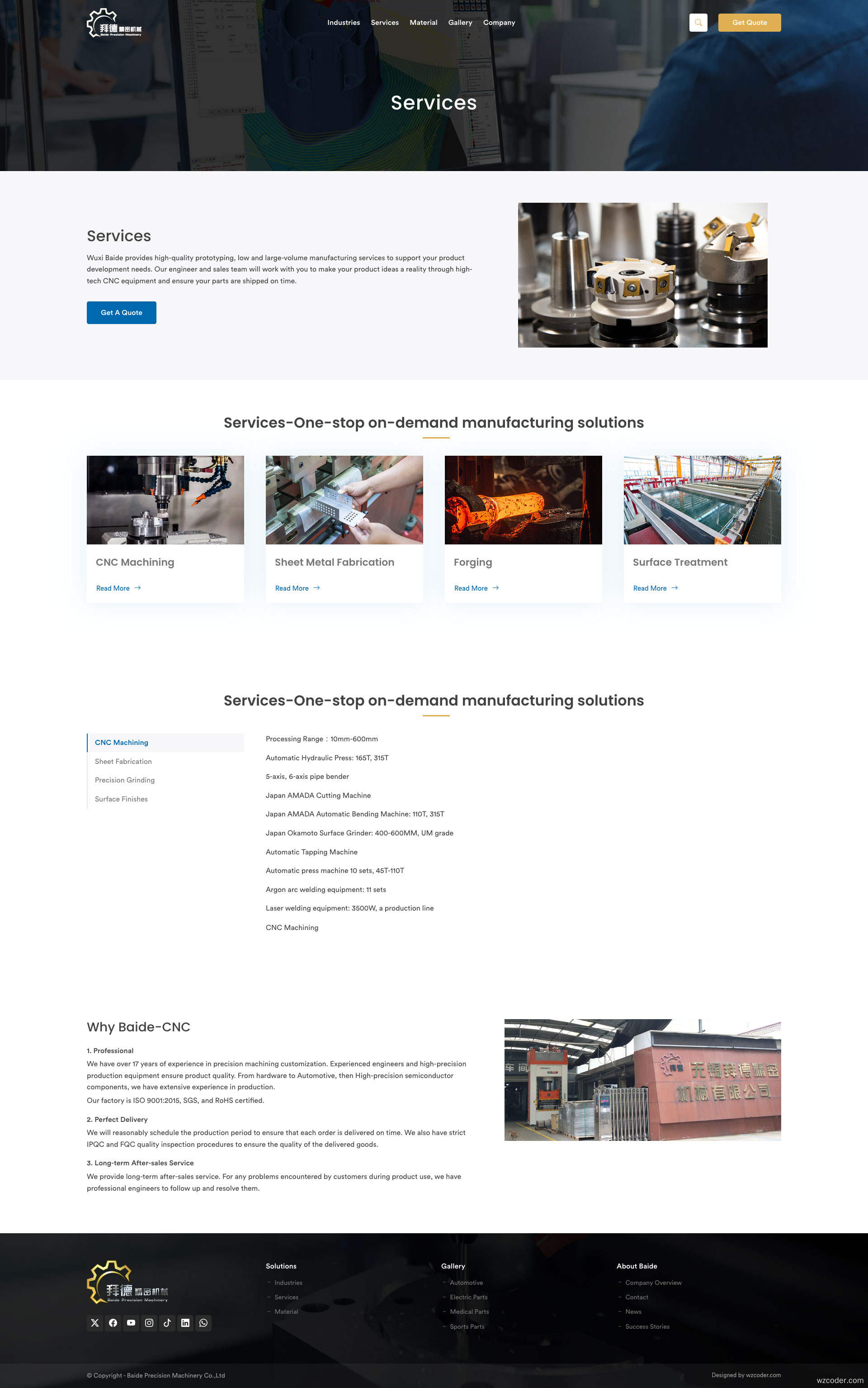 加工服务类外贸网站模板,响应式设计。包括服务、产品、相册、企业介绍、询价等多个海外外贸站功能,支持多国语言扩展。