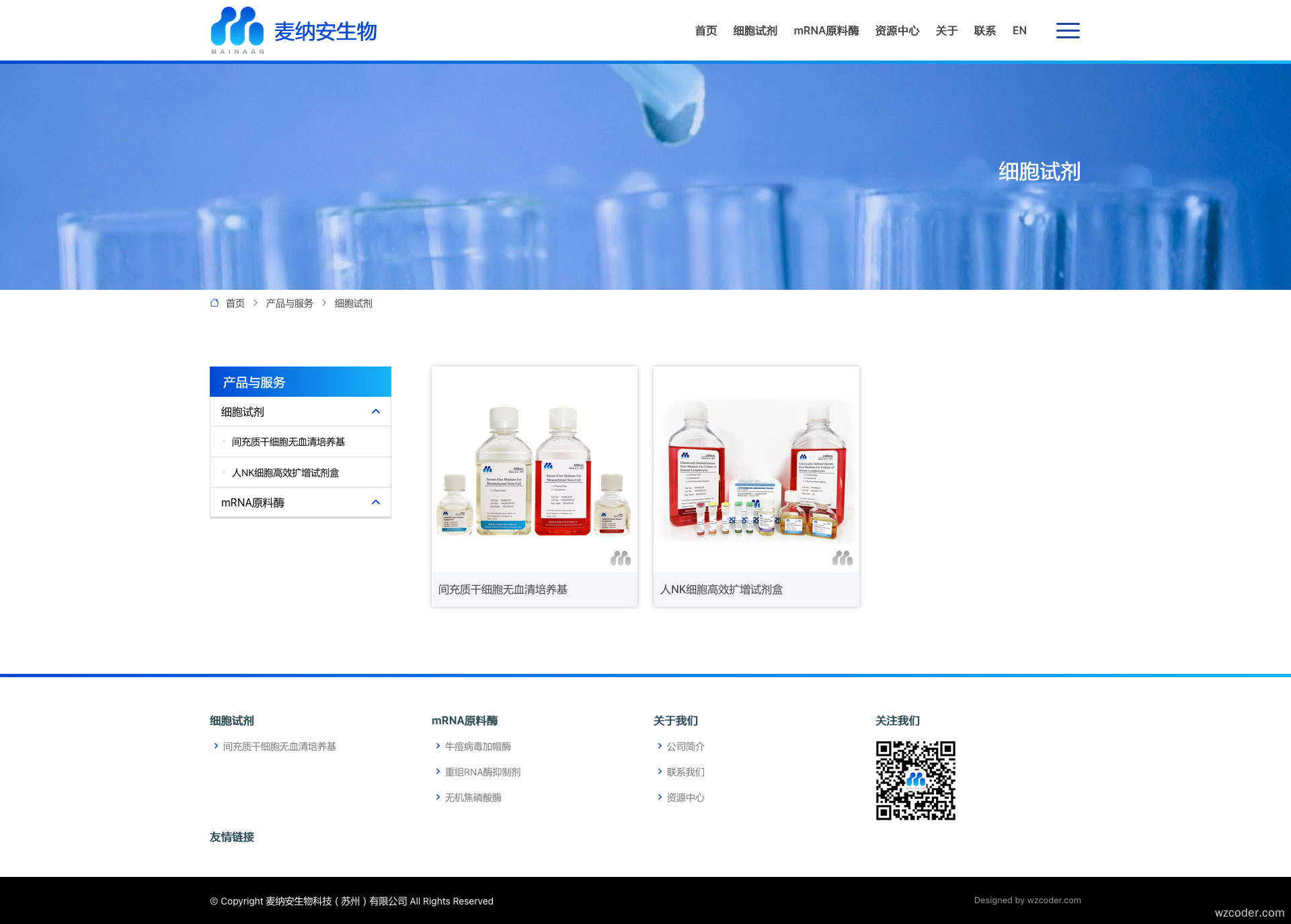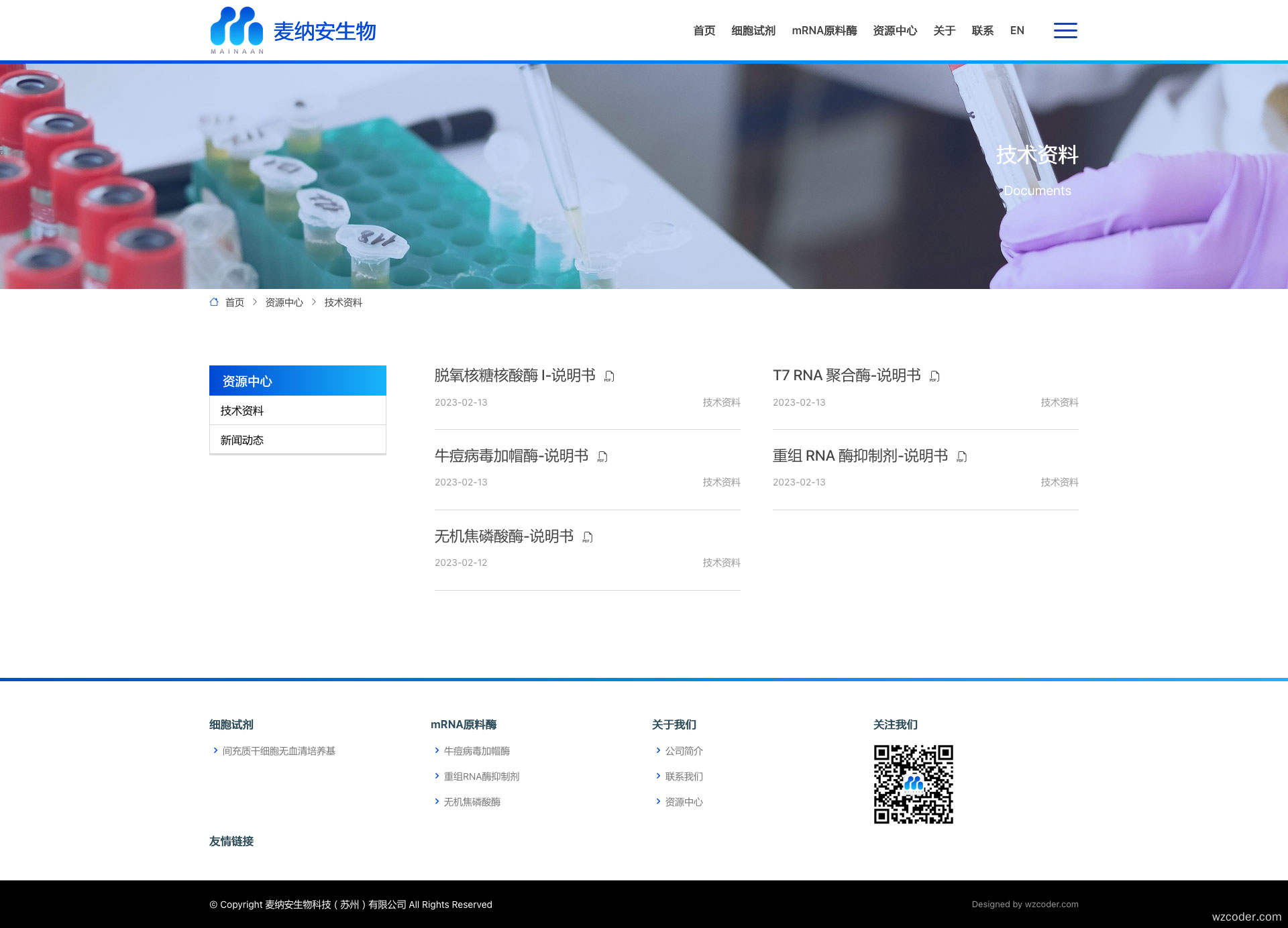 生物制药双语言企业官网模板,蓝色风格,包含企业服务、产品、下载、新闻等企业标准模块。