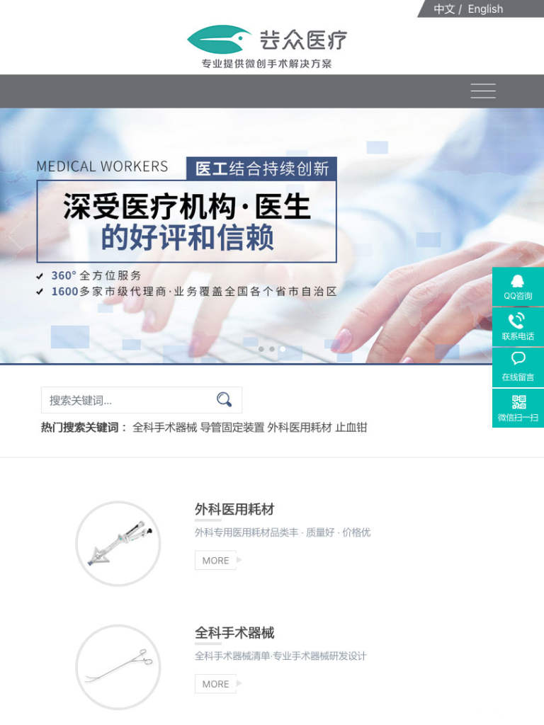 响应式医疗企业、产品展示型企业网站模板。SEO 功能模块完善,支持多语言扩展。
